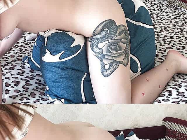 Horny pussy masturbates on a pillow