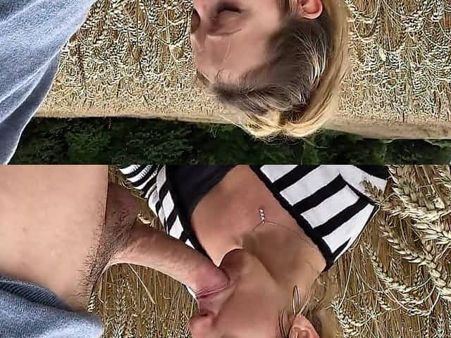 Femme salope improvise une pipe à son mec dans un champs de blé