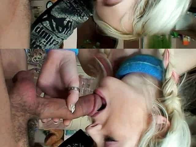 Jeune coquine mince a un petit cul offre une pipe baveuse