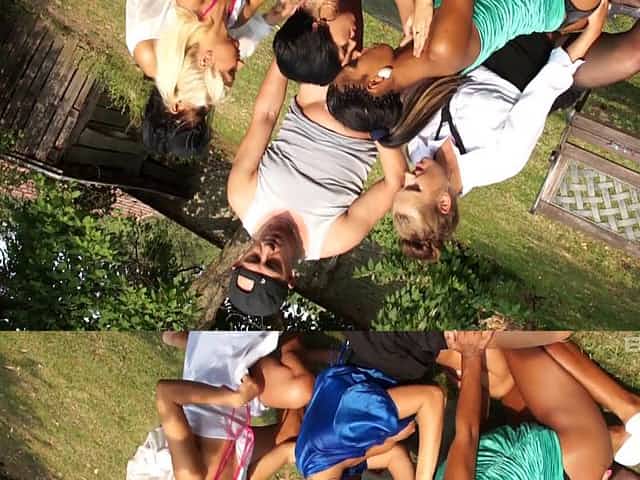 Erotic group sex with two studs and a lot of glamour babes
