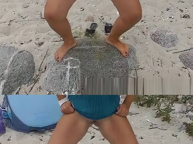 Amateur piss drinking on the beach