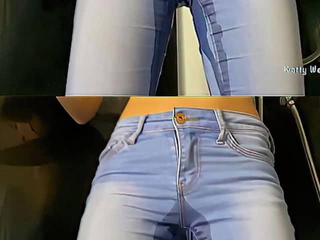 Golden shower for a girl in pissed jeans