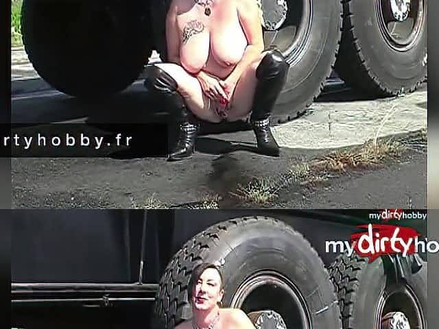 Huguette montre son gros cul de salope qui pisse