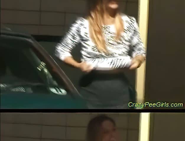 Gal peeing in car washing