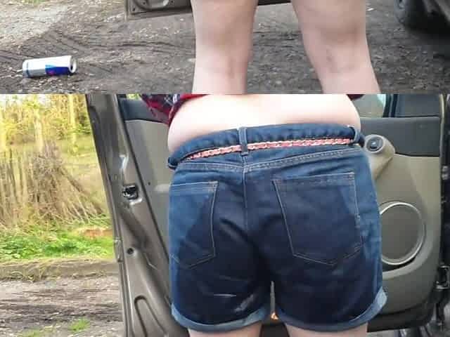 Beautiful girl with natural boobs public piss and close-up