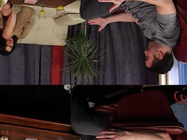 Cute brunette bitch playing cards in undressing with a bolt