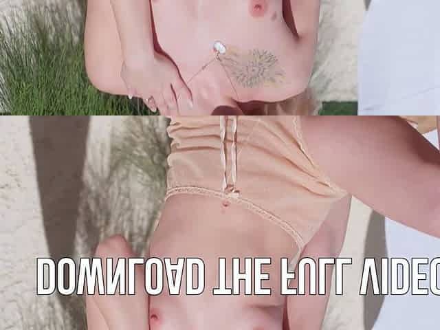 Tiny blonde teen Kiara Cole strips naked outdoor for Playboy