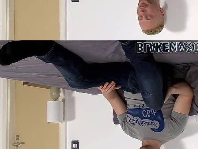 Innocent Elijah plays with a toy and cums right in his mouth