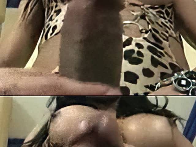Tranny TS playing with big hard cock and balls uncut head