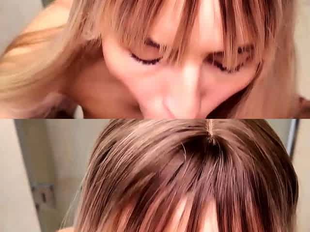 Sloppy oral pleasure from super-hot blonde, jizz in mouth.