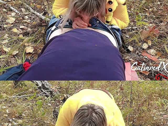 MILF outdoor blowjob and cum in mouth outdoors - Pokemon parody