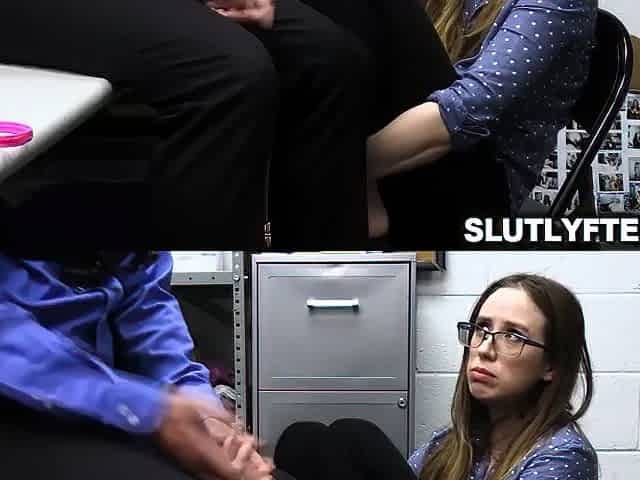 Cute Shoplifter Teen In The Backroom Needs To Suck And Fuck With The Mall Cop