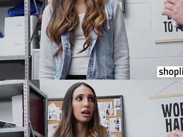Sexy Shoplifter Cheerleader Slut Caught By Two Mall Cops And Fins Herself Between Two Angry Cocks