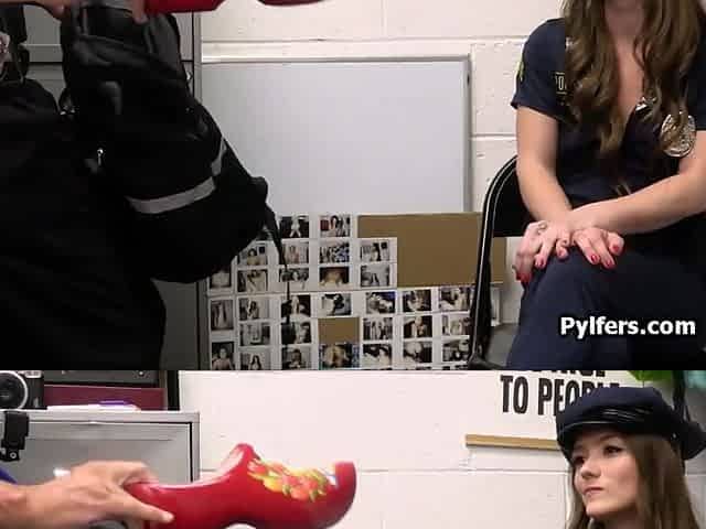 Mall cop makes slutty suspect squirt all over his desk