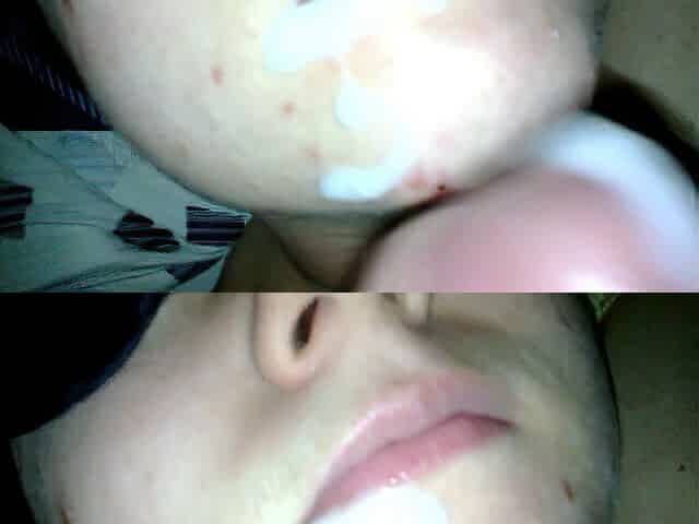 Cumming on her lips and cheeks