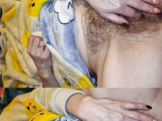 "Gently massages my hairy loose stretched vagina before going to sleep"
