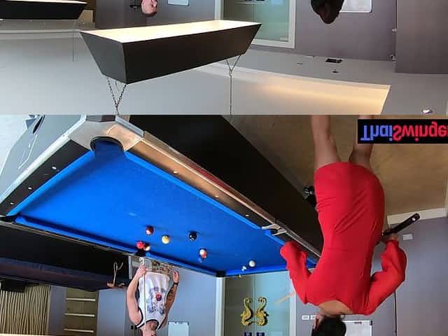 Amateur couple playing pool and having passionate sex afterwards