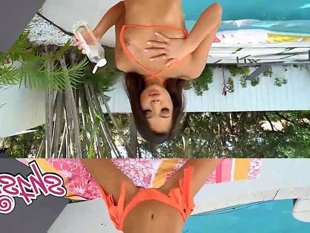 Watch Vina Sky's perfect body squirt as she fingers her shaved pussy and rubs her perfect body in the pool