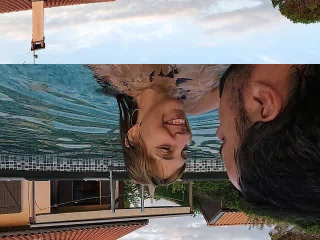 German tourists having POV outdoor sex by the pool