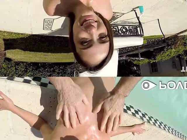 Hot Teen Brunette With Perfect Ass Fucked By The Pool With Ashley Anderson