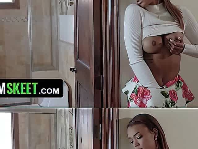 Hot Black Teen With Big Natural Tits Gets Caught Spying On Her Step Bro While Showering