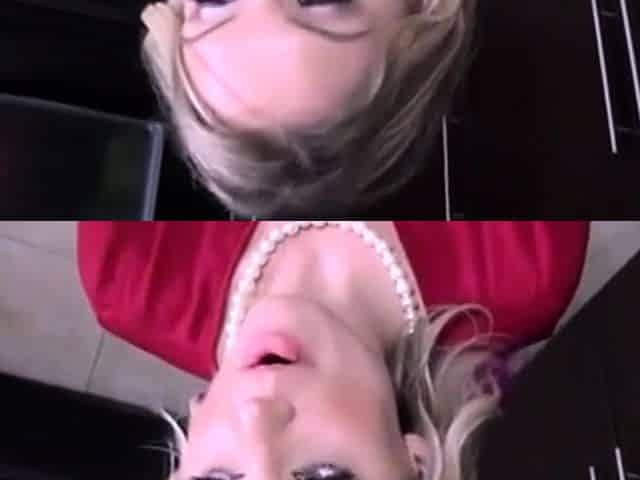 Buxom fair haired mom swallows 2 sweet tiny cocks greedily