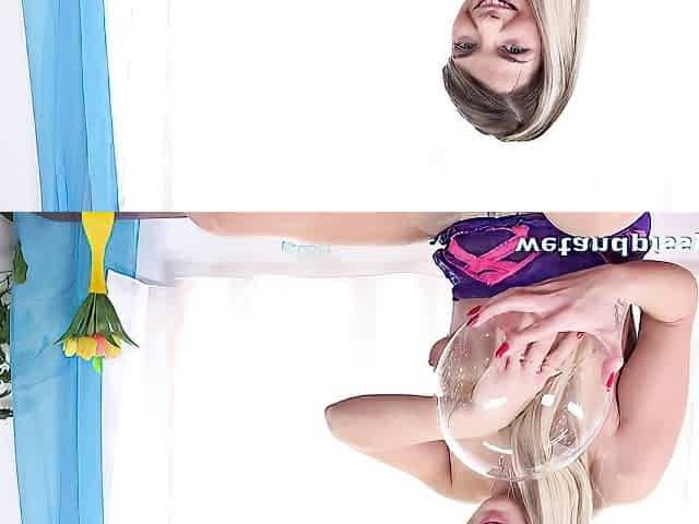 Blonde chick on high heels Annabelle Adamse plays in solo