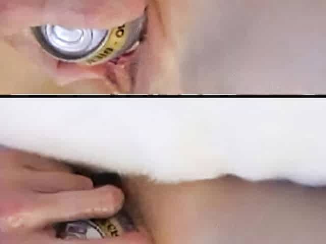Sweet old lady Iva sticks a can of beer deep in her shaved pussy