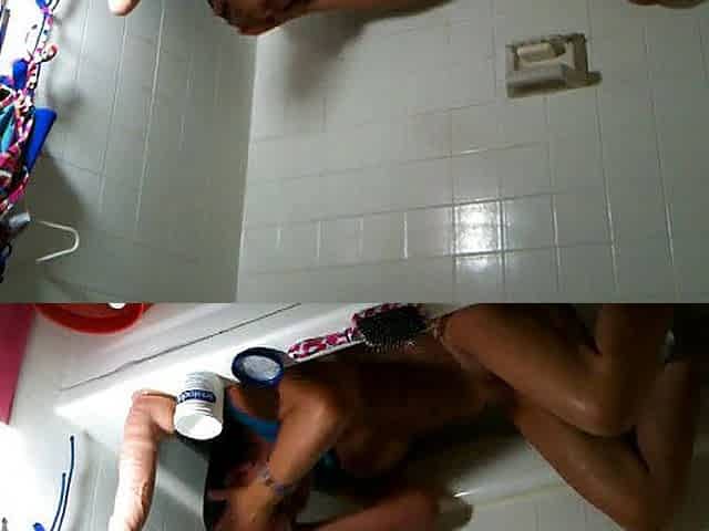 Fucking myself with a big dildo in the bathroom