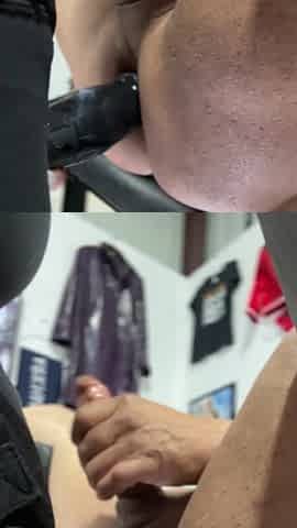 Latex Bitch Pegging And Gaping His Ass Until He Cums With My Cock Inside