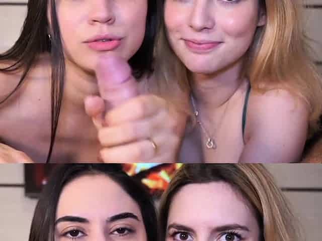 POV video of two hotties giving a double BJ - Ashli and Amy