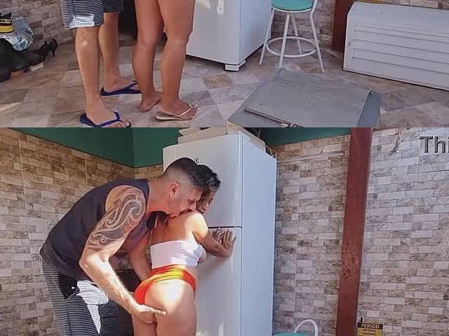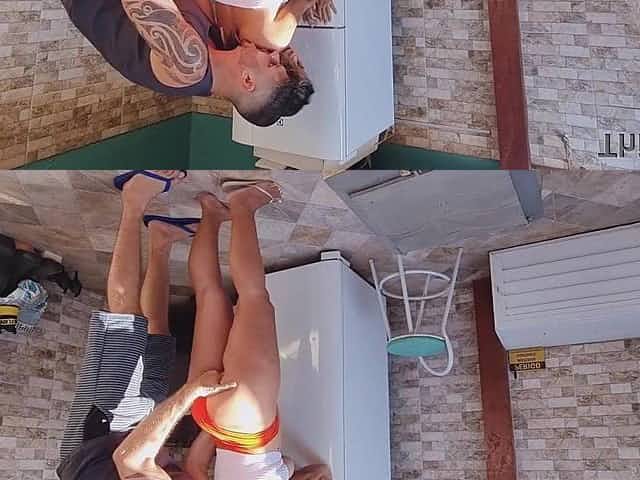 Nasty neighbour is tidying her area with her large booty to tempt me!