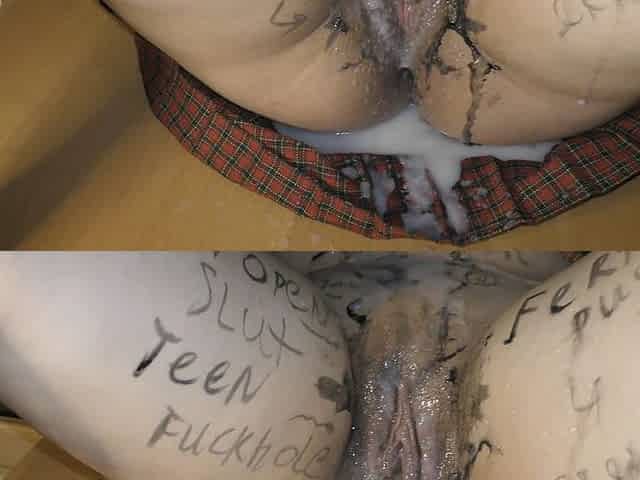 Innocent schoolgirl receives a surprise pregnancy during a wild bukkake gangbang roleplay