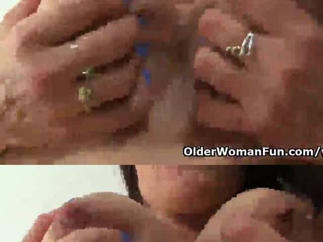 British mature secretary Leia masturbates in fishnets