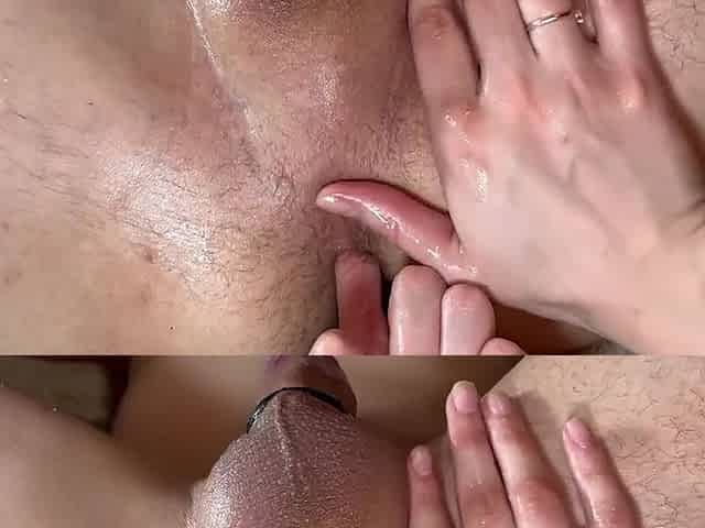 Intense Oiled Body to Body Massage with Happy End for German Boyfriend in FFM Threesome with Teen and Her Girlfriend