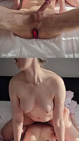 Amateur morning prostate massage. Wife milks her spouse's prostate