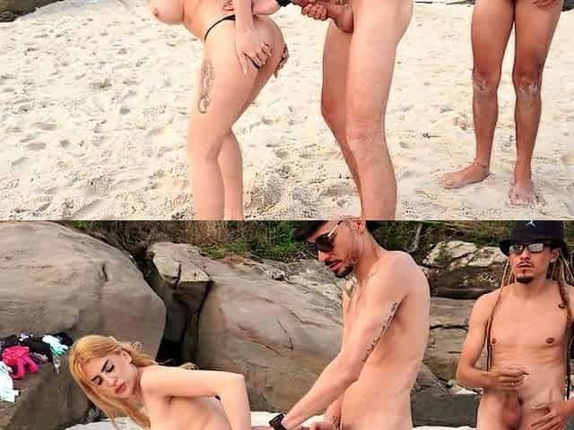 Exhib public, anal threesome, rough anal