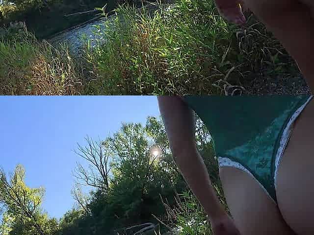 Blonde chick getting her holes pounded in the middle of the forest