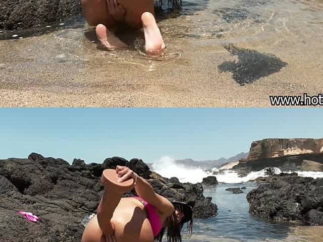 Hotkinkyjo Fuck Deep Huge Dildo From Mrhankey, Belly Bulge and Anal Prolapse in Ocean