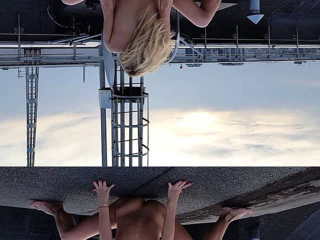 Babe is showing her boobs in public