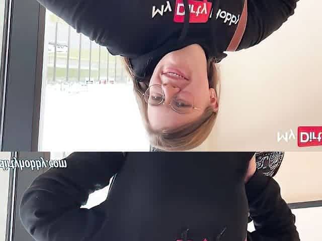 Public agent french babe in glasses nailed on a public stairwell