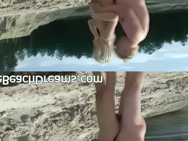 Blonde chick stroking hard dick of her man on a nude beach