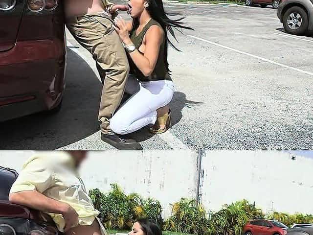 Milf swallows cum in parking lot from strangers cocks