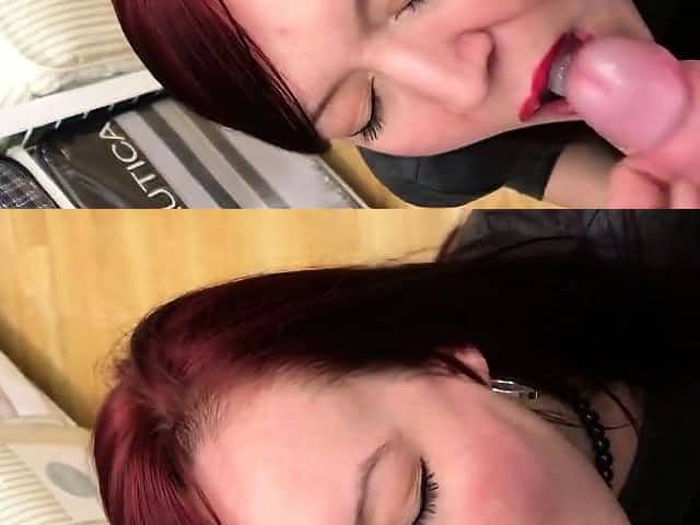 Redhead teen outdoor with cum in mouth