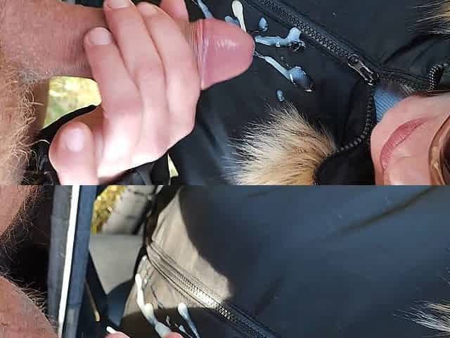 cum on mature mouth (car)