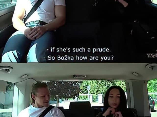 2 French whores toy every other in a car