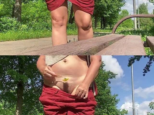 Public park risky twat play and flash