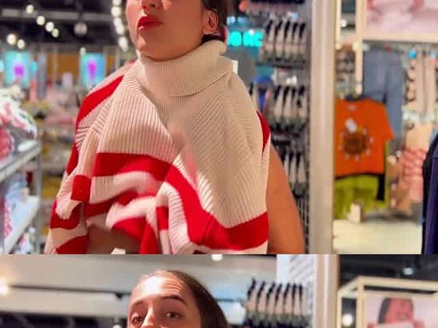Pussy Flash - My exhibitionist wife without panties plays the bitch in a shoe store