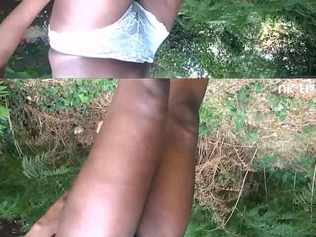 Ebony flashing and outdoor masturbation of busty black babe Bunny having exhibitionist fun outside
