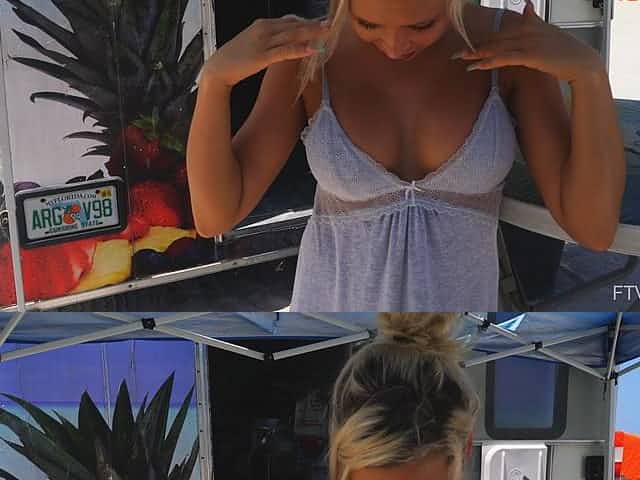 Long haired blonde teen bombshell Riley flashes her tits in public